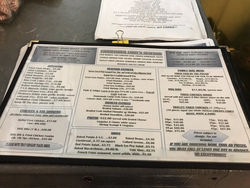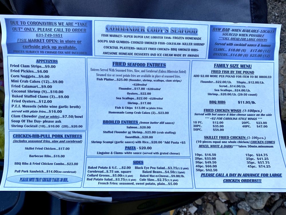 Commander Cody's Seafood is a must-visit seafood and barbecue joint located at 41 Smith St Shelter Island, NY. This restaurant offers a variety of delicious dishes and amenities such as delivery, takeout, reservations, vegetarian options, credit card acceptance, outdoor seating, catering services, and more. With a divey and quiet ambiance, it's perfect for groups, kids, lunch, or even a solo dining experience. The menu boasts fresh seafood dishes cooked to perfection, with highlights including their signature seafood platter, flavorful barbecued ribs, and mouth-watering grilled shrimp. The combination of flavors and quality ingredients will leave you craving more. Don't forget to pair your meal with a refreshing drink from their bar, and enjoy the relaxing atmosphere at Commander Cody's Seafood.